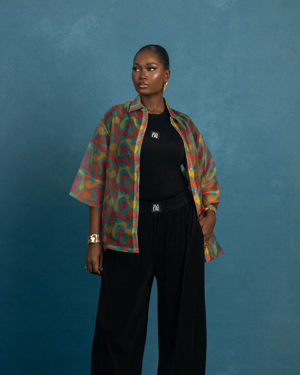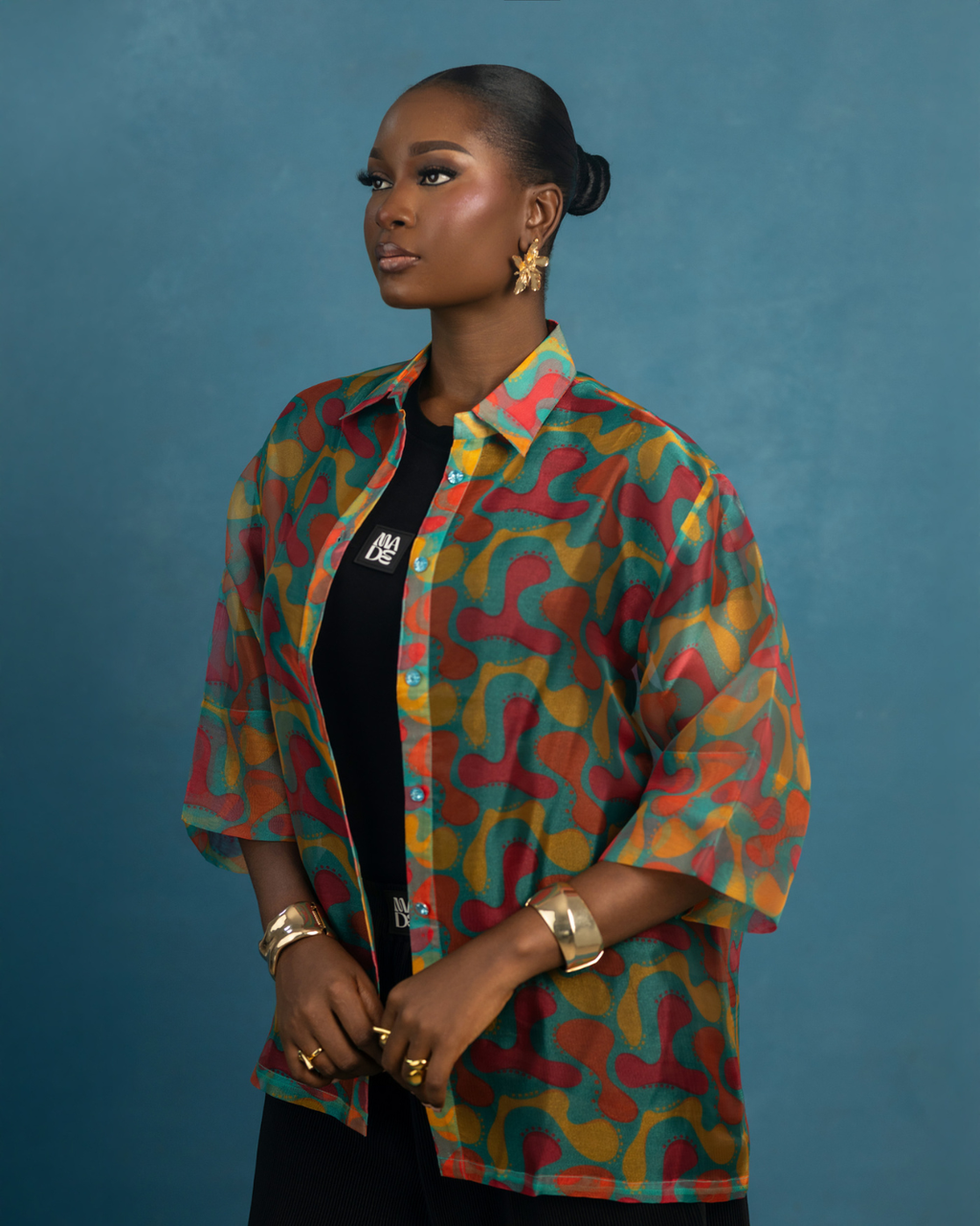 From the Odun Ayo Collection, the Ara Organza shirt is a delightful blend of style and comfort. Adorned with the brand's exclusive print, the shirt embodies both style and ease, making it a must-have for those seeking effortless, chic fashion.