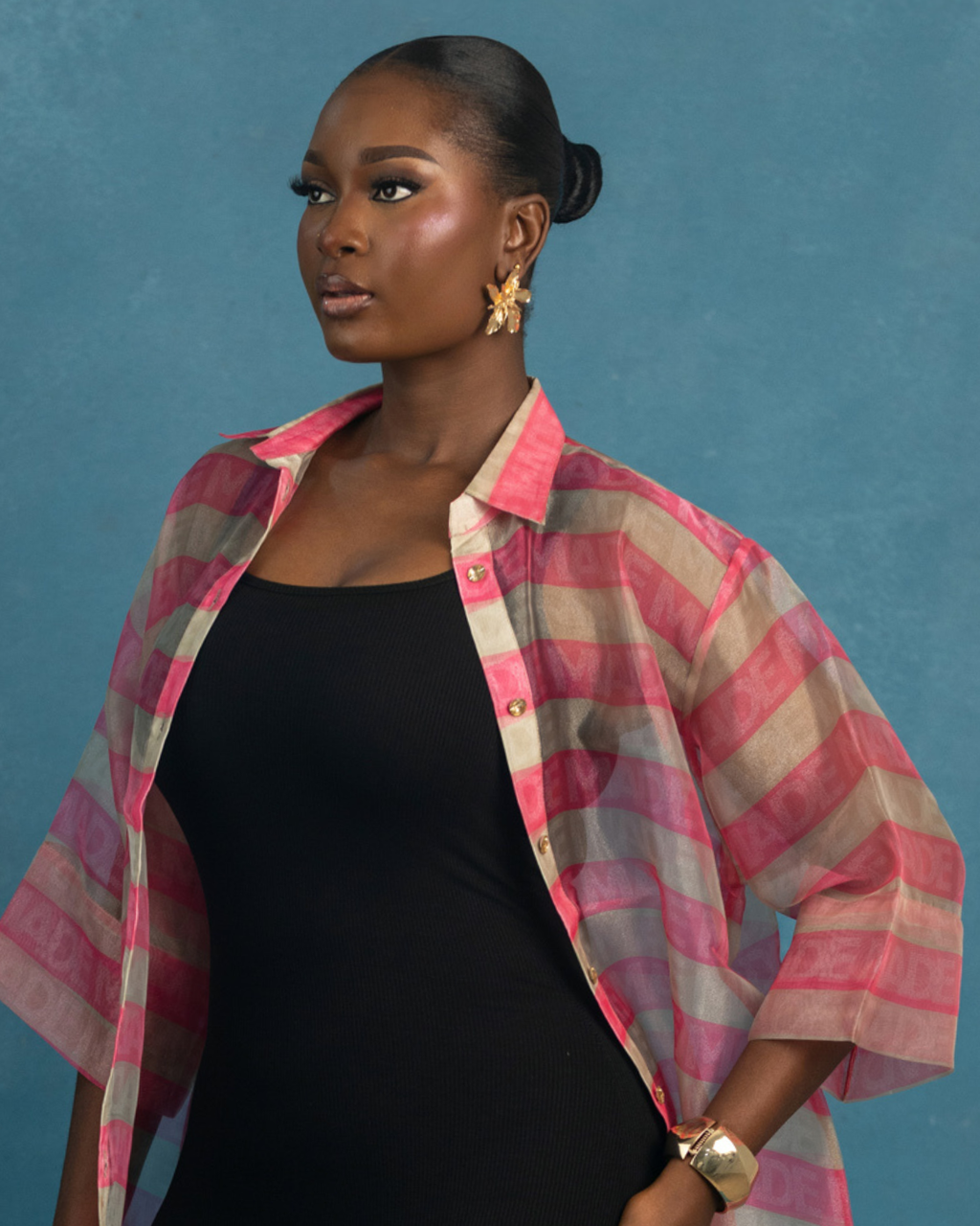 Designed for women who walk in purpose, the IMAGO DEI organza shirt features our signature MADE Monogram, thoughtfully crafted from Genesis 1:27. This elegant piece blends meaning with style, celebrating identity, purpose, and divine craftsmanship. Perfect for pairing with your favorite shorts, trousers, or skirts for a relaxed yet chic look.